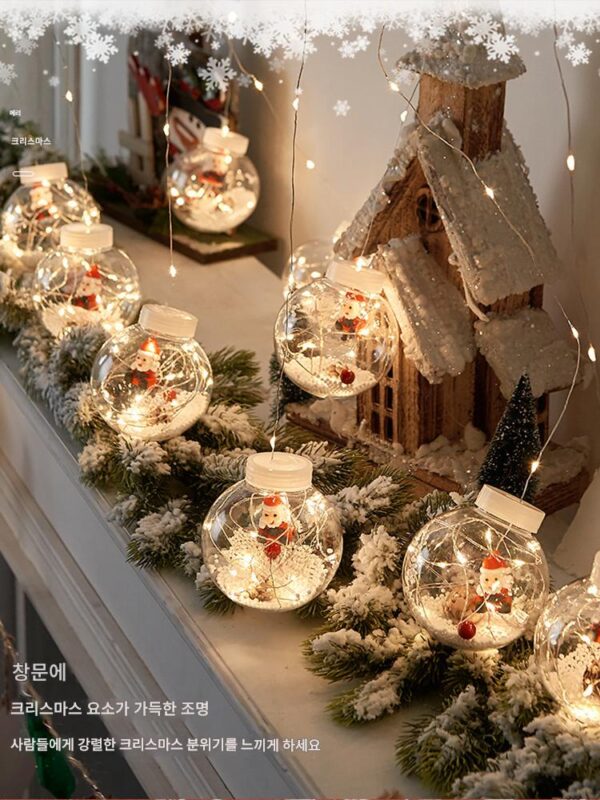 크리스마스 LED 장식용 발광 도어 걸이 크리스마스 트리 쇼핑몰 창문 분위기 조명 페인트 원형 흡착식 걸이 조명