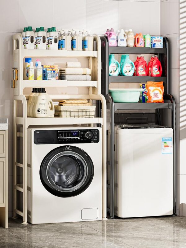 드럼 위에 세탁기 선반을 설치하여 T자형 캐비닛을 차단하고 발코니에 변기 세면대 선반을 쌓아서 수납할 수 있는 선반을 설치했습니다.