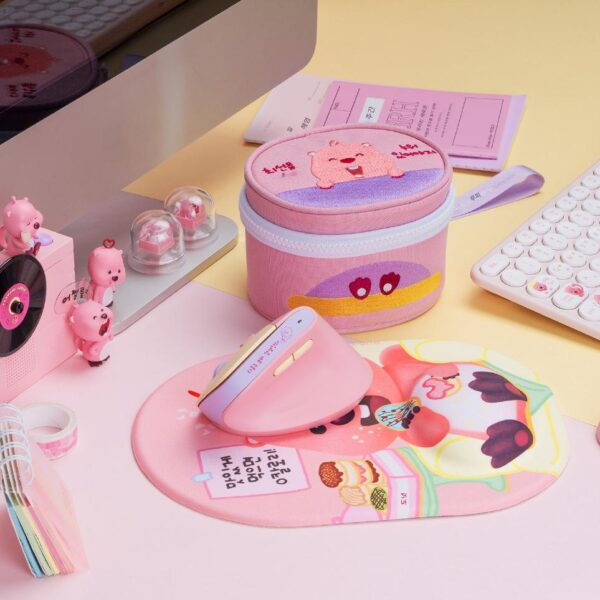 한국어 루피 핑크 비버 인체공학적 수직 수직 그립 마우스 무선 충전 무소음 만화 귀여운 여성