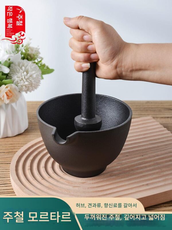작은 행복 주철 박격포 약재 빻기 약병 빻기 가정용 빻기 빻기 후추