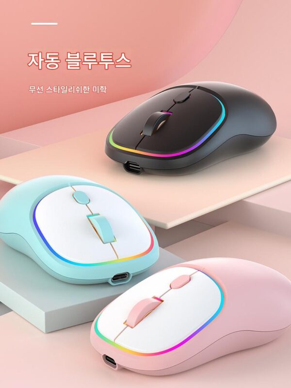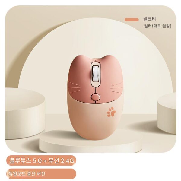 무선 블루투스 듀얼모드 마우스 타입-C 충전 무음 버튼 핑크 걸스 오피스 노트북 데스크탑