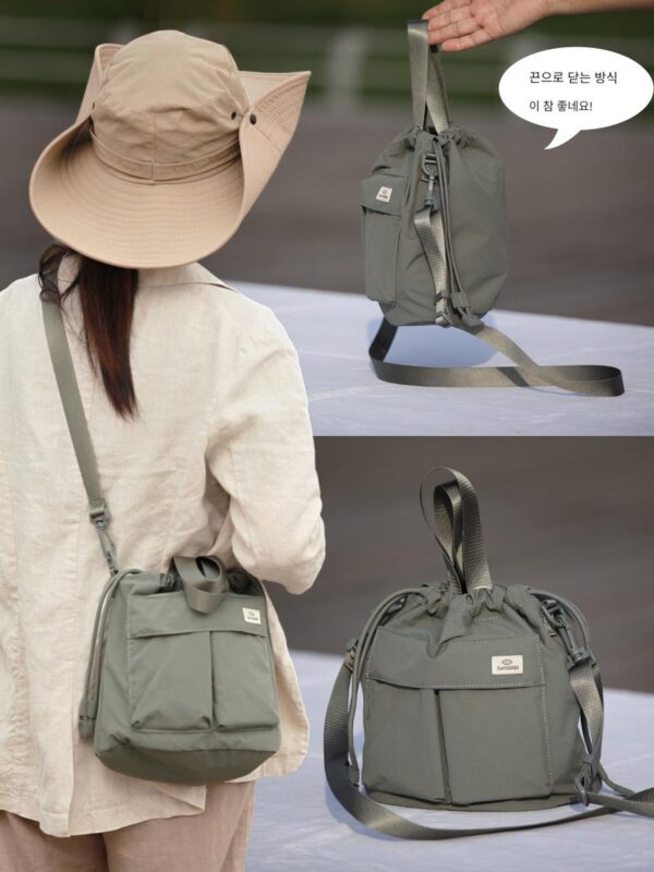 일본 레트로 심플 드로스트링 버킷 백 숄더 크로스바디 핸드백 여성용 가방 가벼운 크로스바디 백 야외 레저