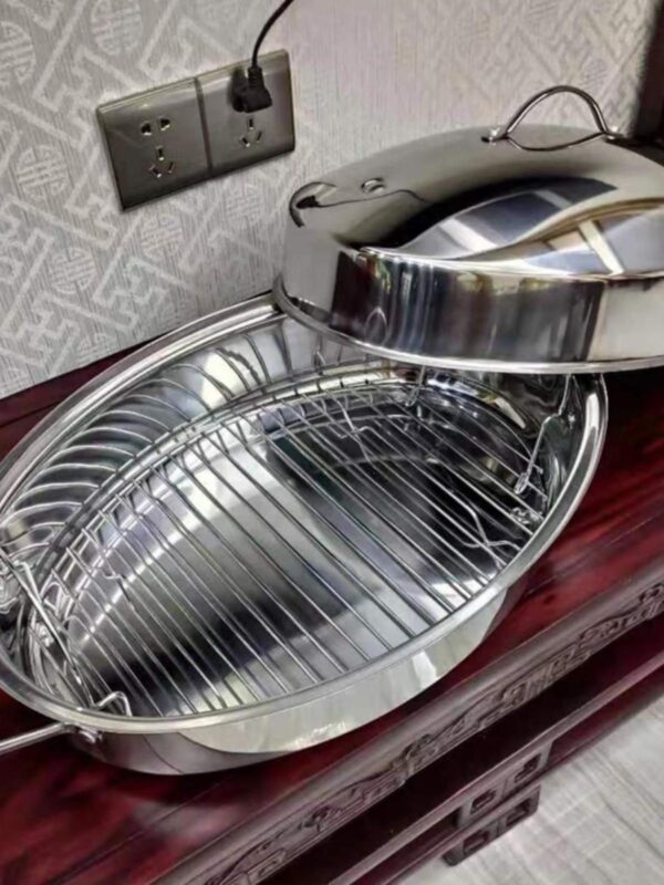 46CM 생선찜 유물 두껍게 확대된 타원형 찜통 수프 냄비 찜닭, 오리, 거위, 해산물 찜 그리드 가스 유도 조리기