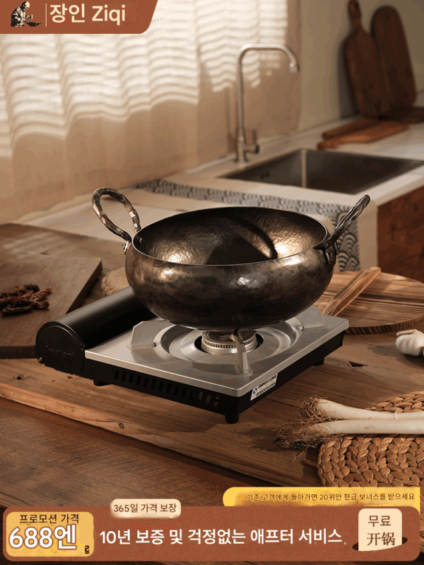 장추 순수 수제 단철 이중 귀 고급 철제 냄비 스튜 냄비 국 냄비 가정용 냄비 국 냄비 무코팅 비질화 노스틱 냄비