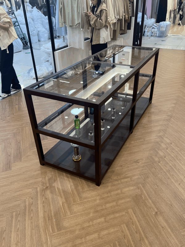 의류 매장 견고한 목재 유리 디스플레이 테이블 보석 매장 액세서리 매장 아동복 매장 섬 테이블 중구 러닝 워터 테이블