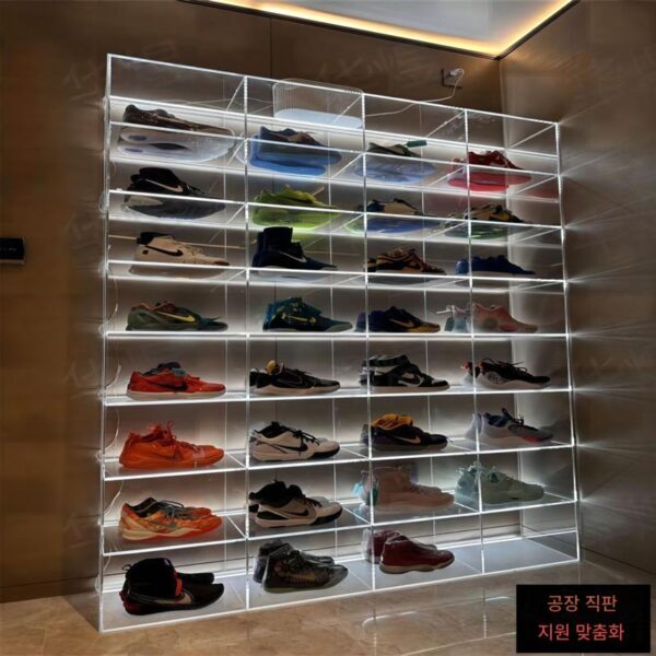 라이트 도어 잠금 장치가 있는 아크릴 신발장, 의류 매장 라이브 룸, 가방 액세서리, 의류 보관 디스플레이, 직접 판매