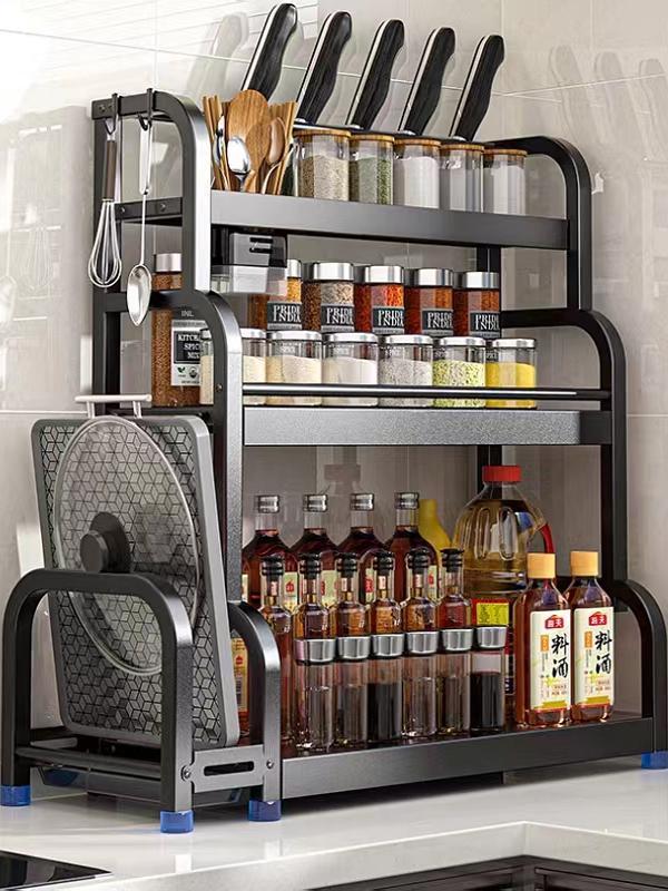 T4kzi 주방 조미료 선반 조리대 젓가락 칼꽂이 다기능 조미료 다층 선반 주방용품 보관 선반