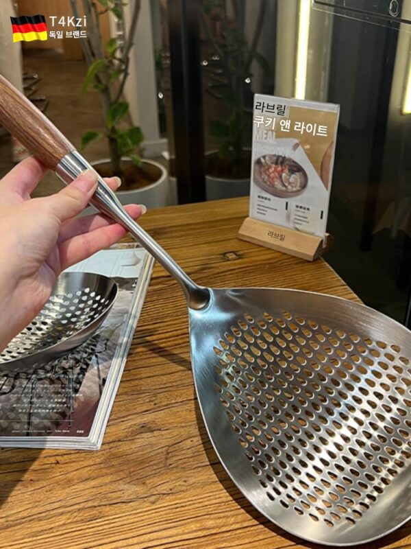 T4kzi 독일 스테인리스 스틸 콜랜더 주방 가정 튀긴 만두 국수 숟가락 냄비 콜랜더 긴 손잡이 숟가락