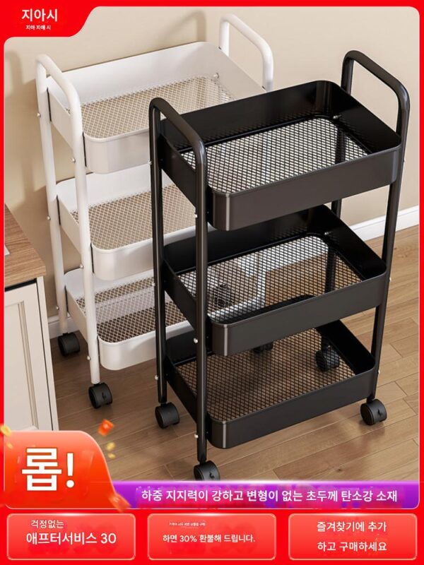 조미료 과일 및 야채 바구니용 주방 트롤리 랙 다층 수납 랙 바닥 이동식 수납 랙