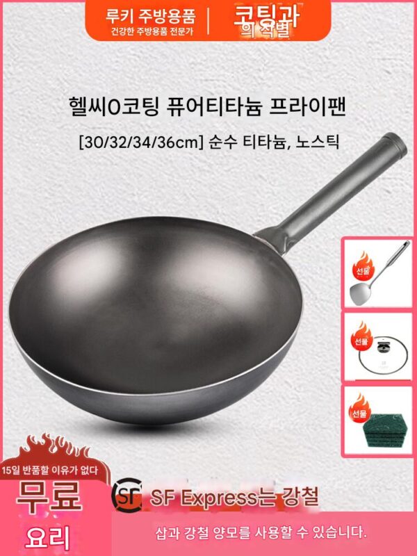 순수 티타늄 프라이팬 가정용 노스틱 팬 라이트 무코팅 대형 두꺼워짐 가스레인지 둥근바닥 프라이팬 티타늄 팬에 적합