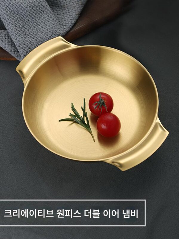 크리에이티브 스테인리스 스틸 일체형 더블 이어 냄비 튀긴 닭고기 스낵 플레이트 한국 파스타 라면 냄비 그릇 상업용 식사 플레이트 작은 냄비