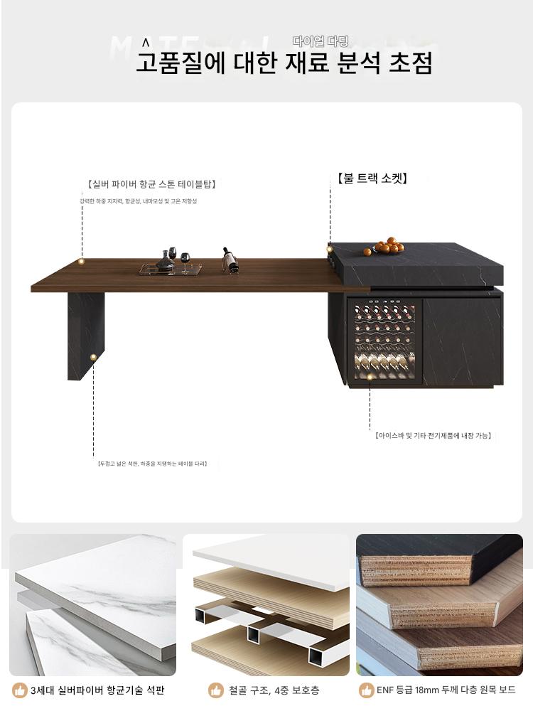 가볍고 고급스러운 록 플레이트 섬 식탁 역식 식탁 섬 통합 디자인 서랍 수납 오픈 키친 소파 가이드 테이블
