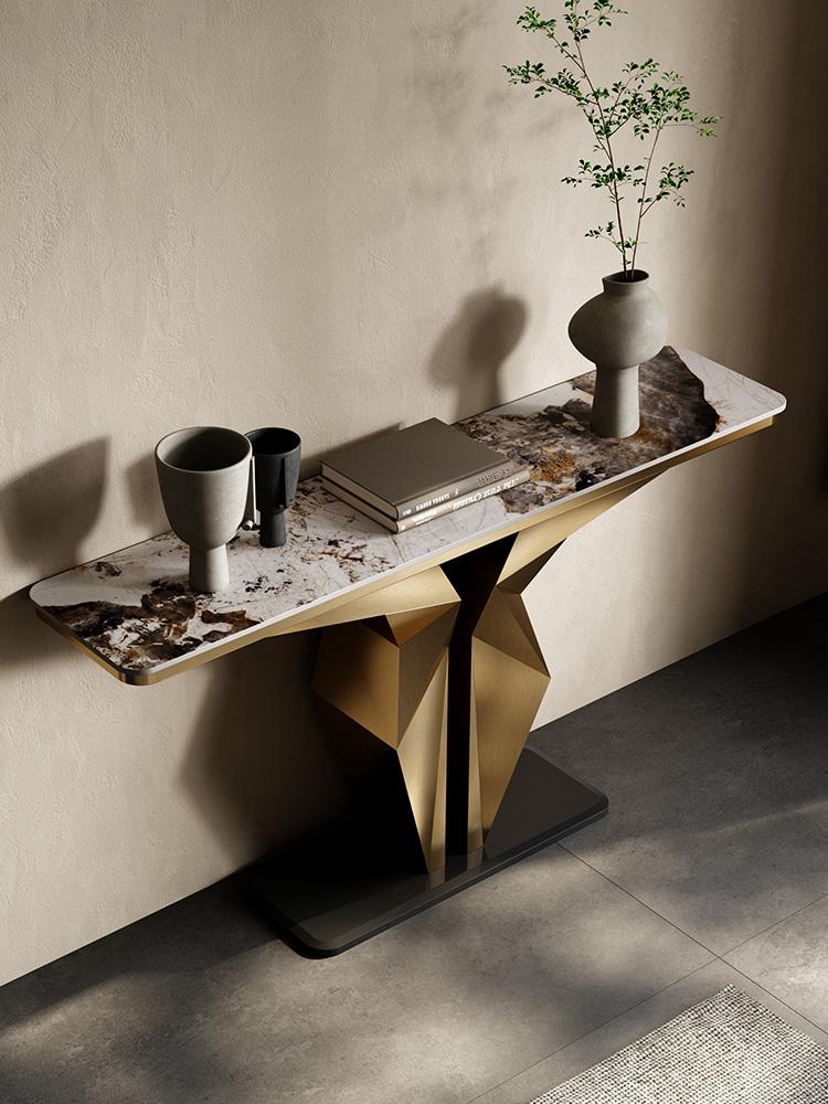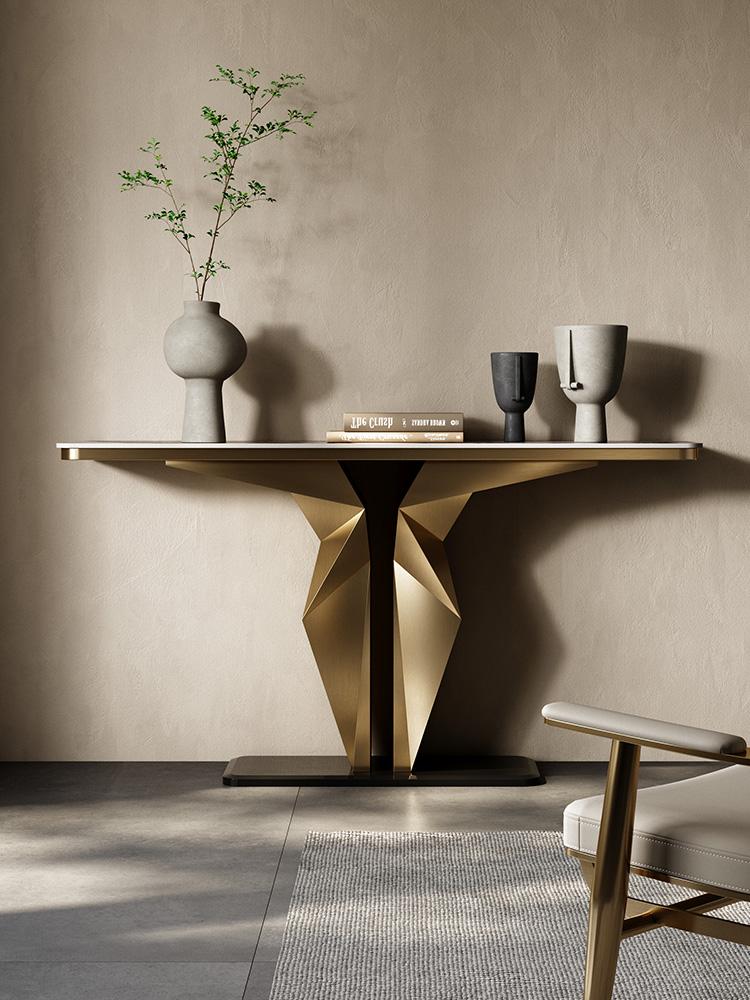 가볍고 고급스러운 스타일의 현관 테이블 빌라 거실 스테인리스 스틸 통합 벽면 테이블 현대식 현관 록 플레이트 현관 테이블