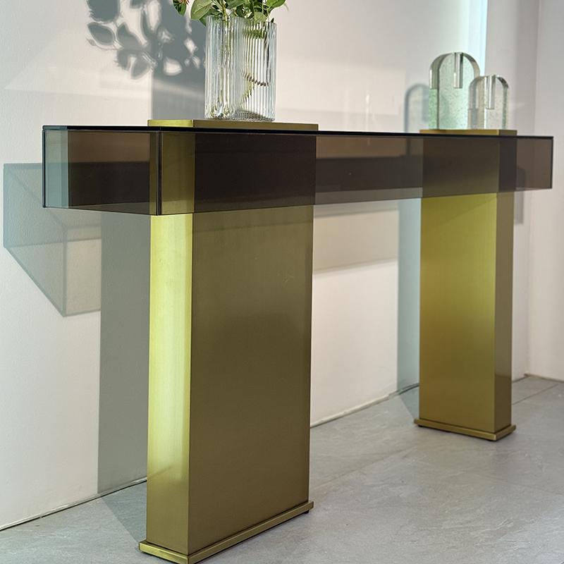 가볍고 고급스러운 이탈리아 스타일 현관 홀 캐비닛 디자이너 크리에이티브 엔드 테이블 스테인리스 스틸 정사각형 테이블 현관 홀 홀 테이블
