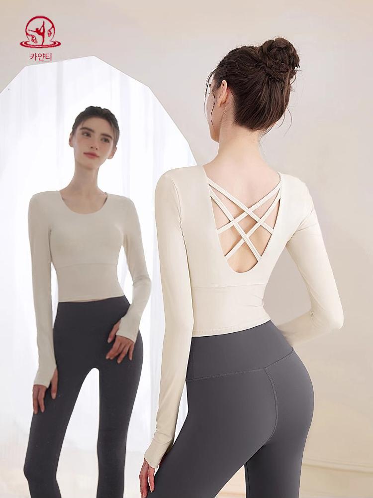 가을과 겨울 여성용 KAYANTY 요가복 상의, 긴팔 피트니스 슈트, 필라테스 트레이닝, 가슴 패드가 있는 스포츠