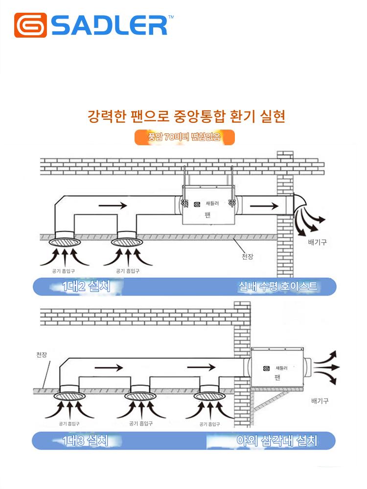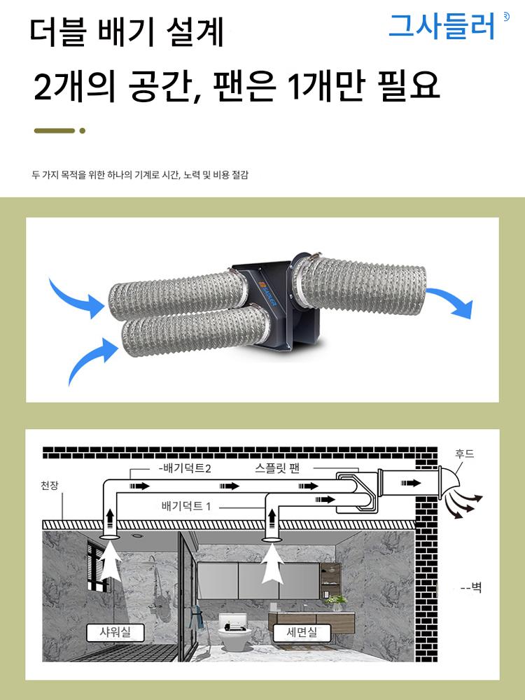 강력한 1대2 파이프 배기팬 호텔 욕실 건습 분리 환기팬 무소음 배기팬