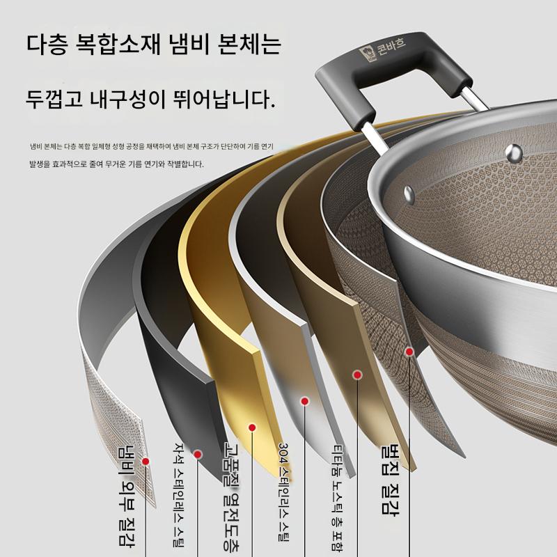 강바허 프라이팬 노스틱팬 디펜 가정용 스테인리스 대형 프라이팬 인덕션 쿠커 유니버셜 더블 이어 대형 스튜 냄비