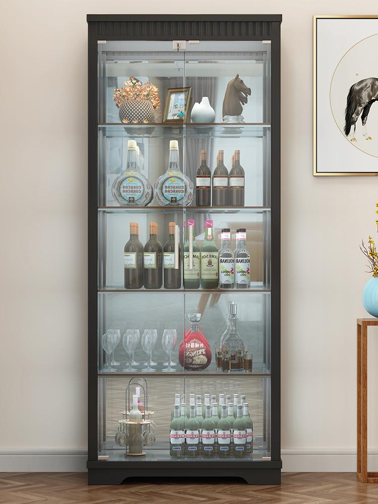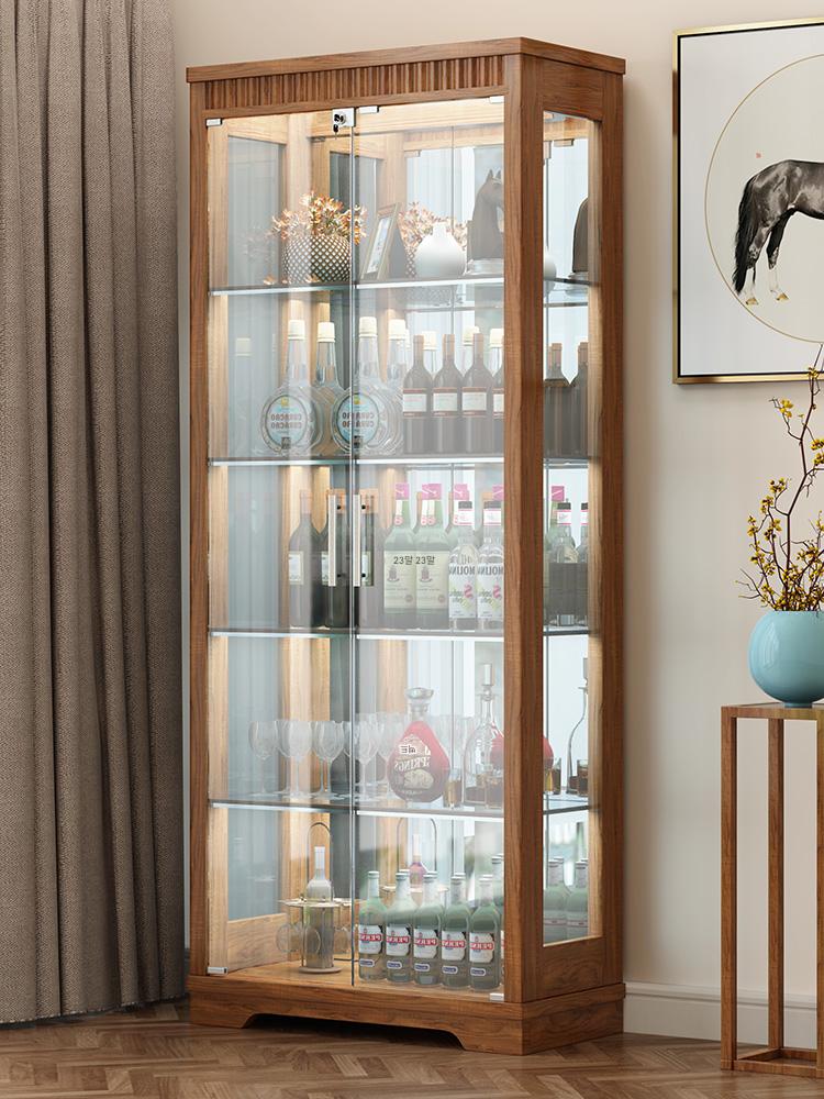 견고한 나무 와인 캐비닛 거실 벽면 찬장 모던 심플 중국식 홈 강화 유리 캐비닛 서재 진열장