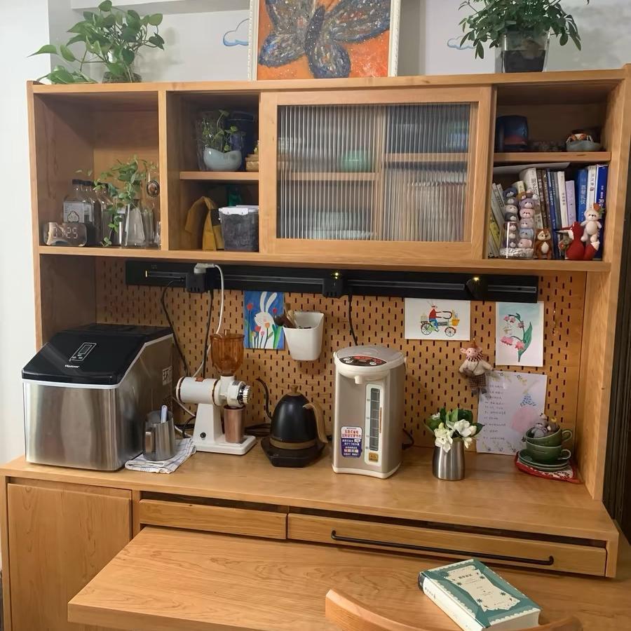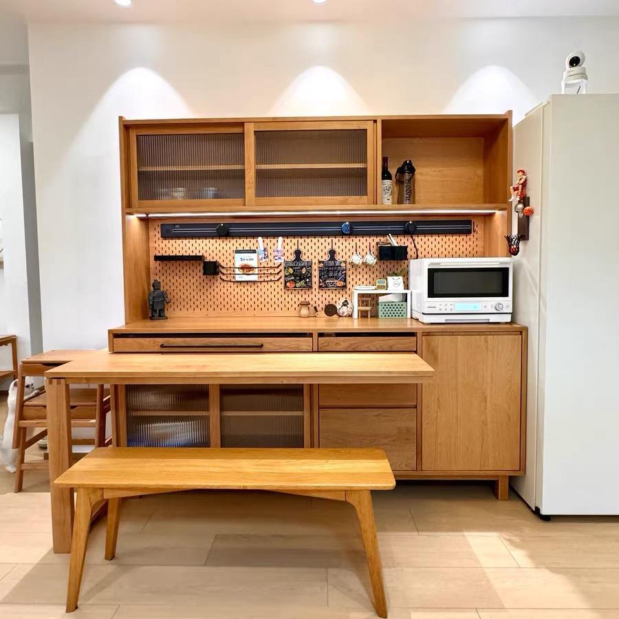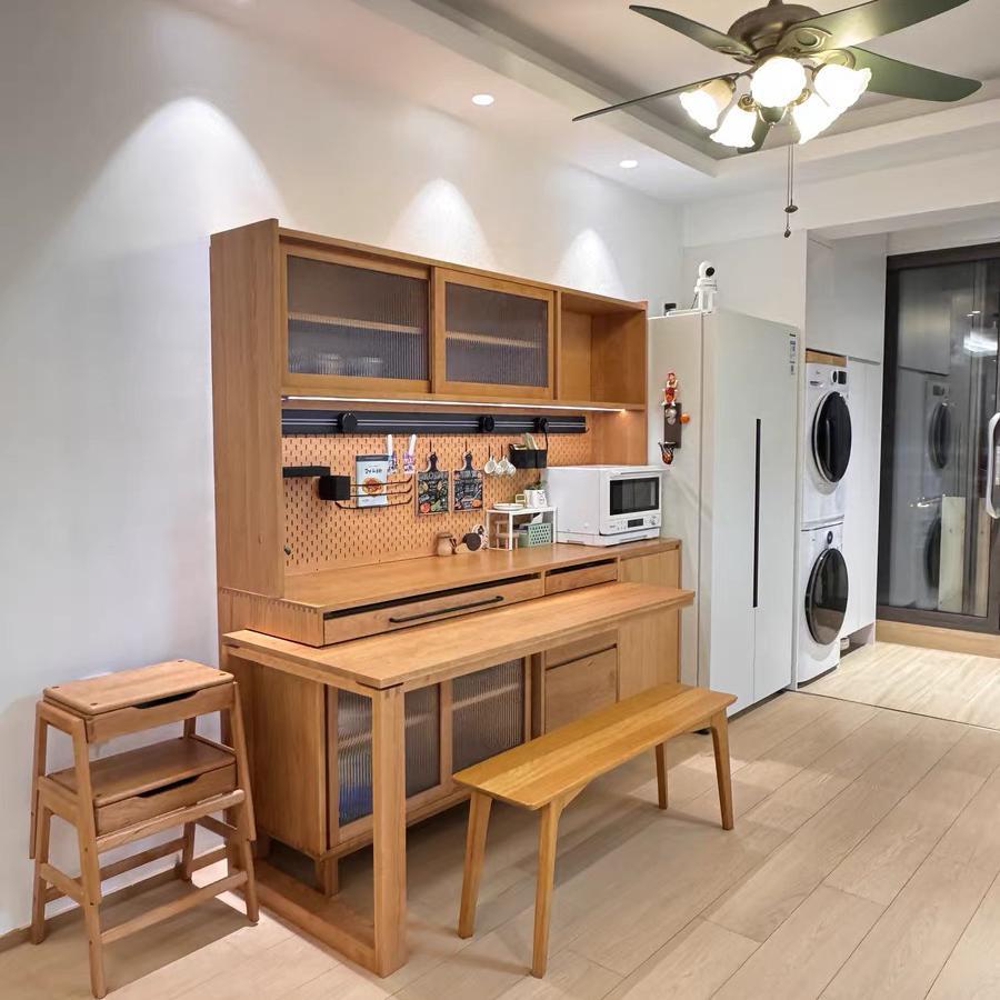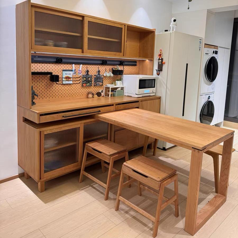 견고한 목재 사이드보드 밀고 당길 수 있는 접이식 식탁 통합 사이드보드 체리나무 홈 거실 수납 캐비닛 다기능