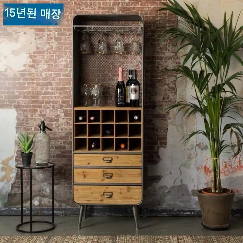 견고한 목재 산업 스타일 와인 캐비닛 보관 캐비닛 높은 발 유리 거꾸로 홈 소형 와인 랙 KTV 바 레드 와인 그리드 캐비닛