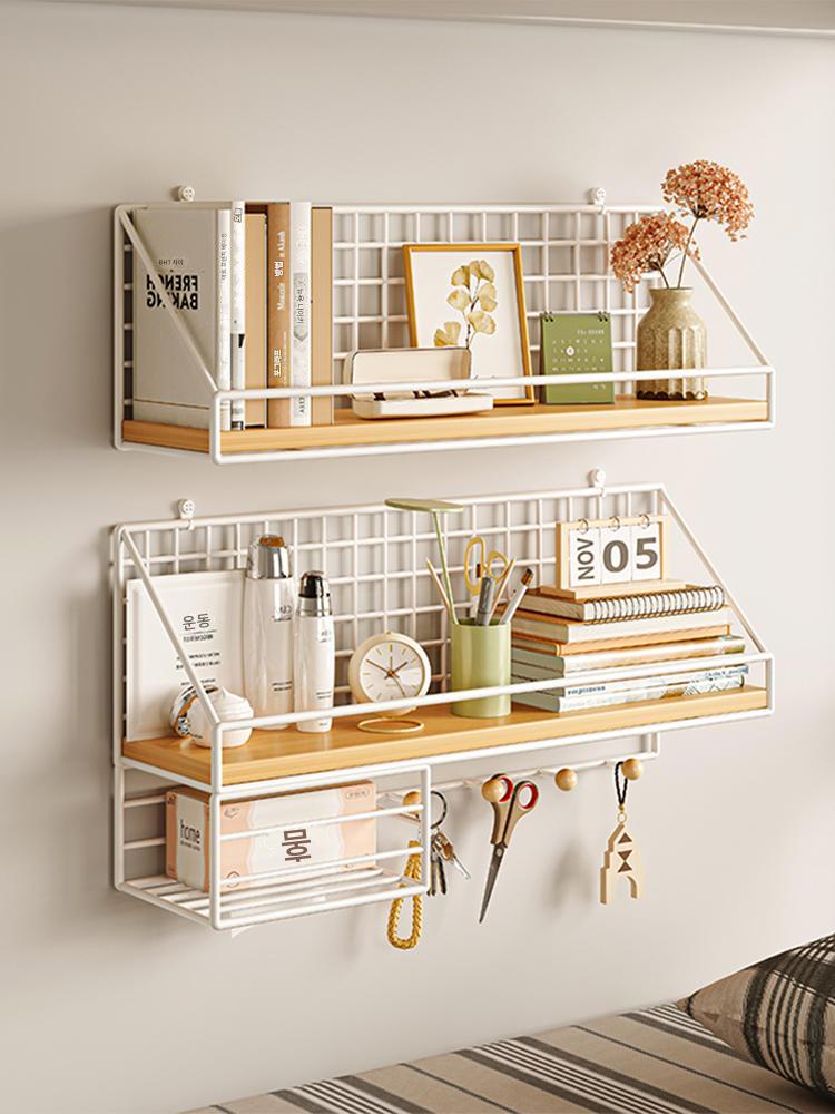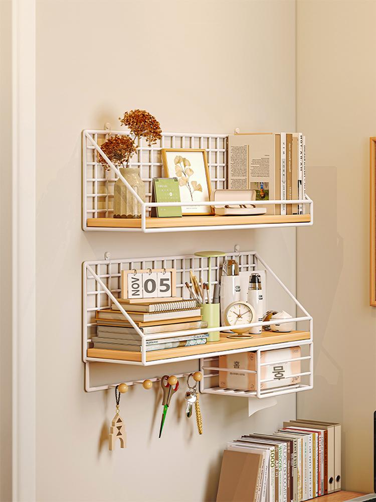 견고한 원목 벽걸이 책장 벽걸이형 원줄보드 크리에이티브 장식선반 벽펀치프리 라이트캣선반