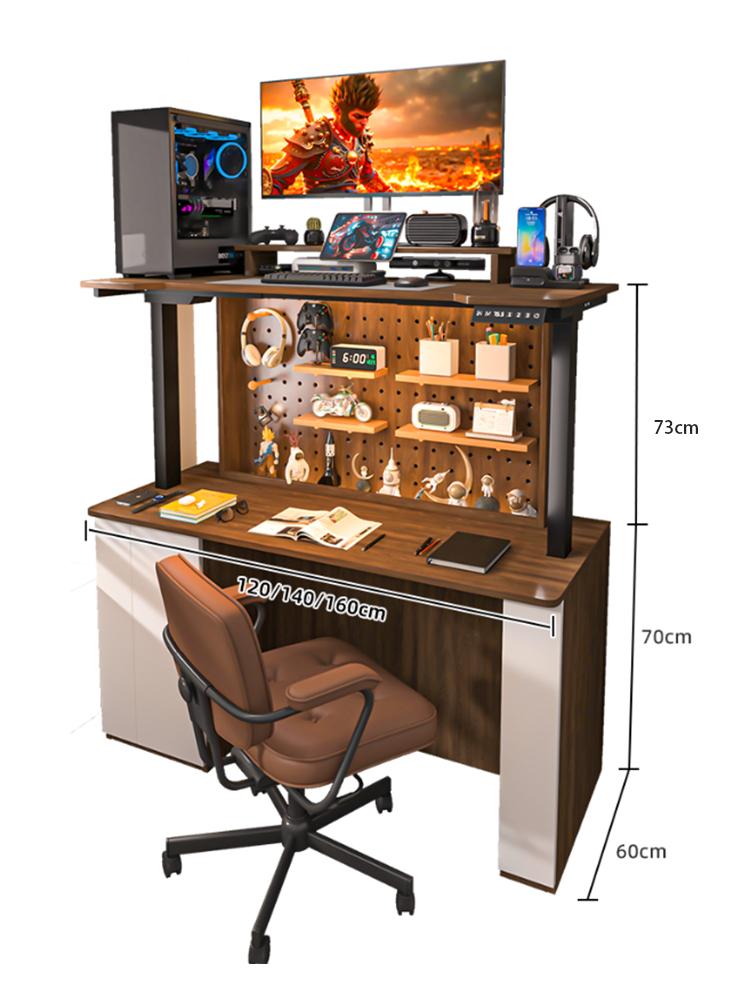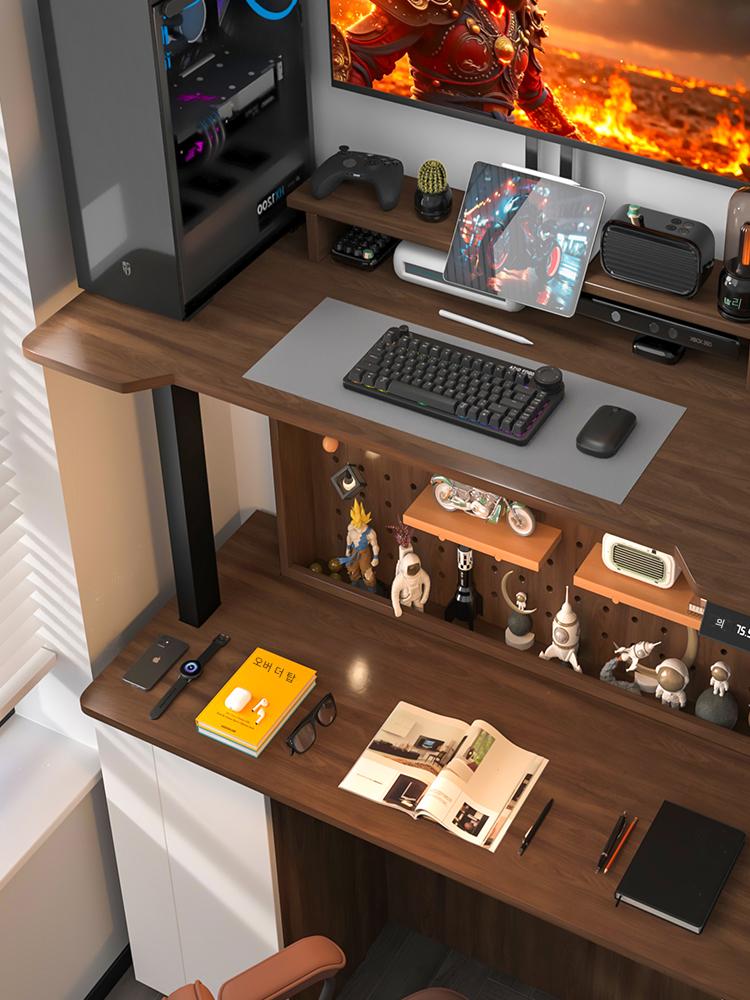 견고한 원목 책상 2중 전동 리프트 테이블 학습 책상 스마트 컴퓨터 책상 게임 테이블 홈 워크벤치