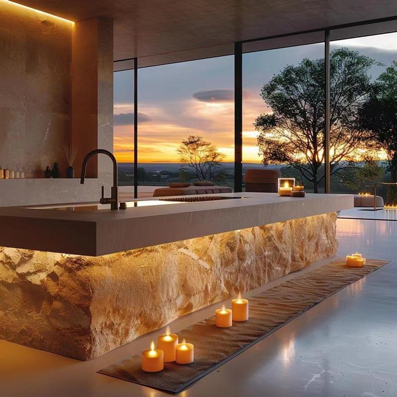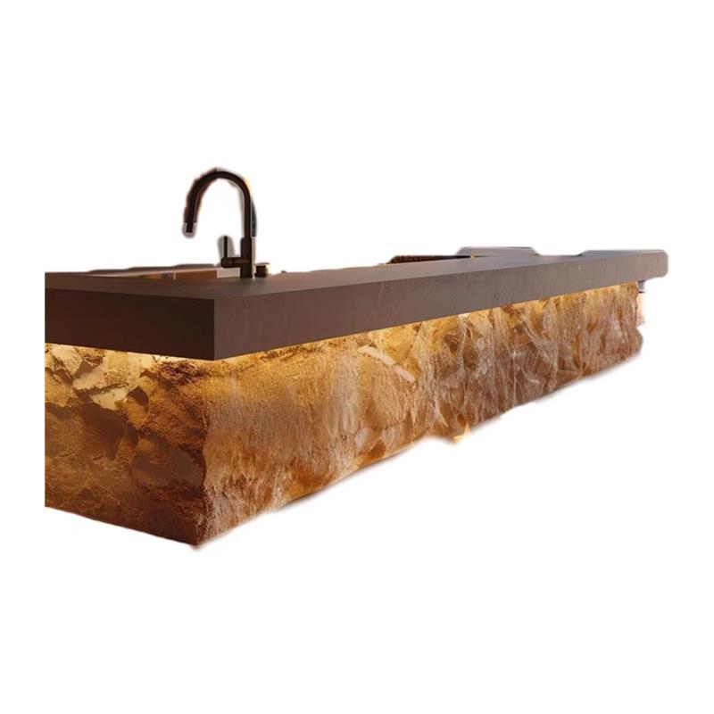 “고급 스톤 슬래브 아일랜드 테이블 식탁 통합형 맞춤 주방 홈 가이드 테이블 다운턴 라이트 고급 고급 서양식 주방 바”의 첫 상품평을 남겨주세요