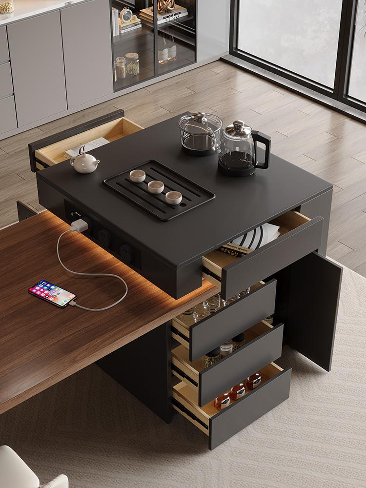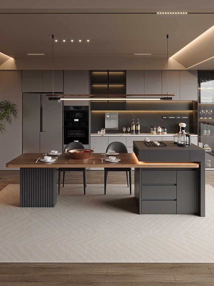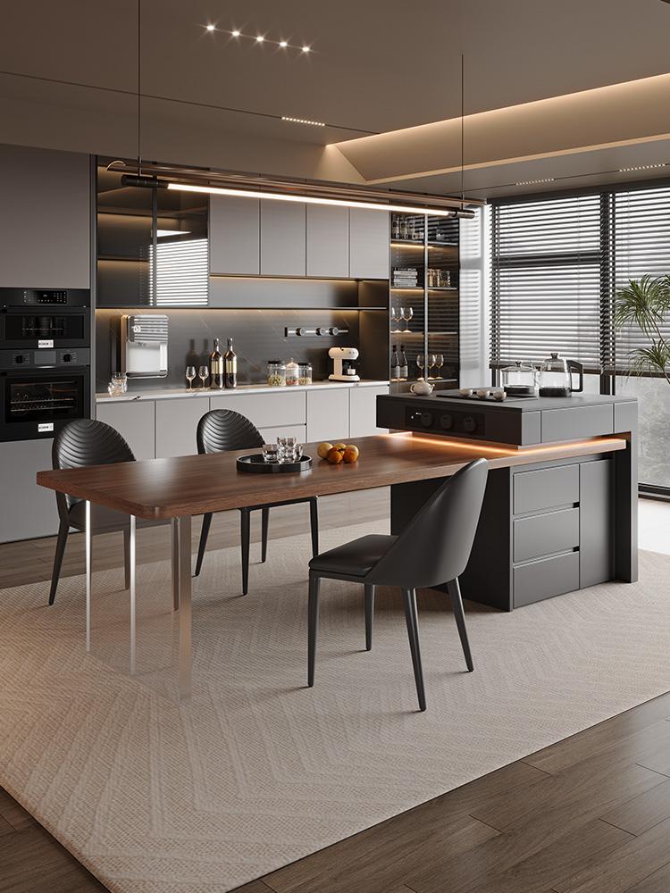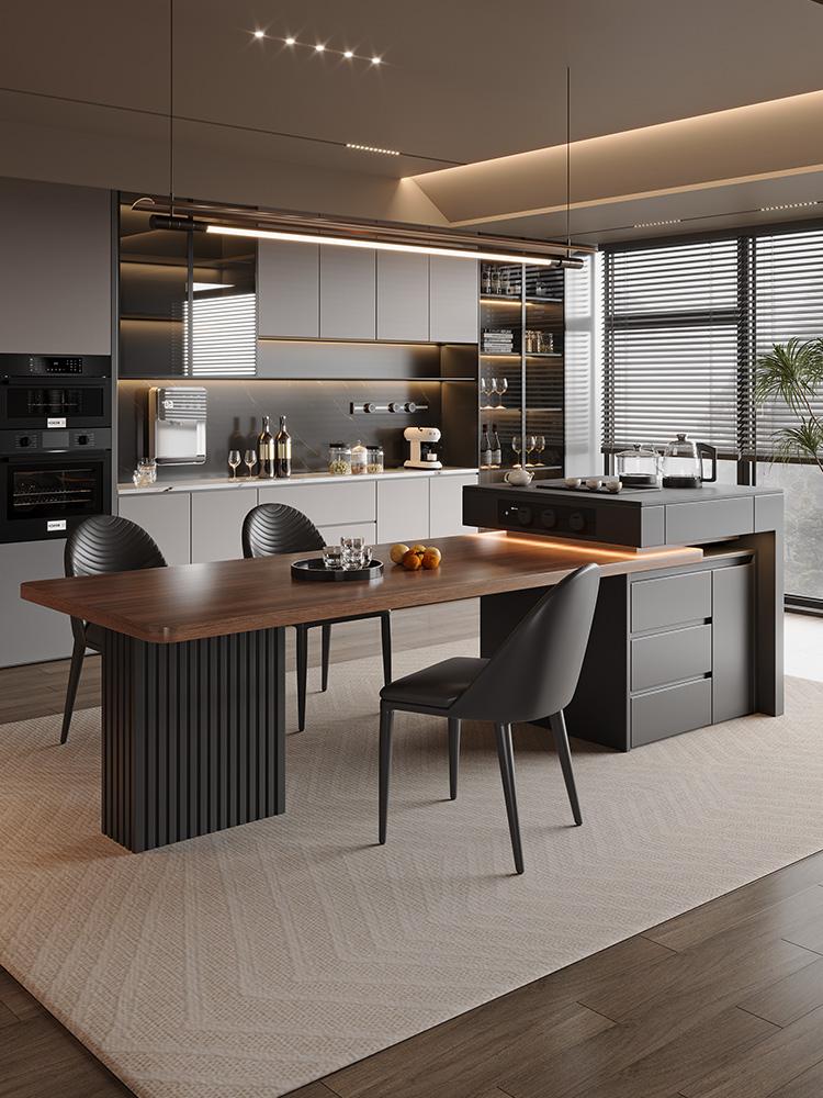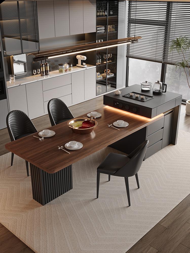 고급 이탈리안 아일랜드 식탁 통합 블랙 월넛 우드 그레인 록 플레이트 식탁 홈 수납식 다기능 센터 가이드 테이블
