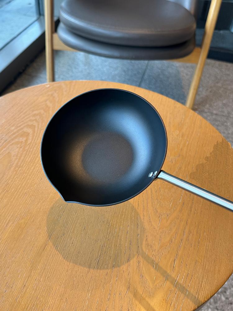 고급 철제 코팅이 안 된 기름 튀는 팬! 가정용 스테인리스 스틸 롱 핸들 오일 붓기 뜨거운 오일 특수 튀김 만두 불타는 오일 프라이팬 계란 프라이팬