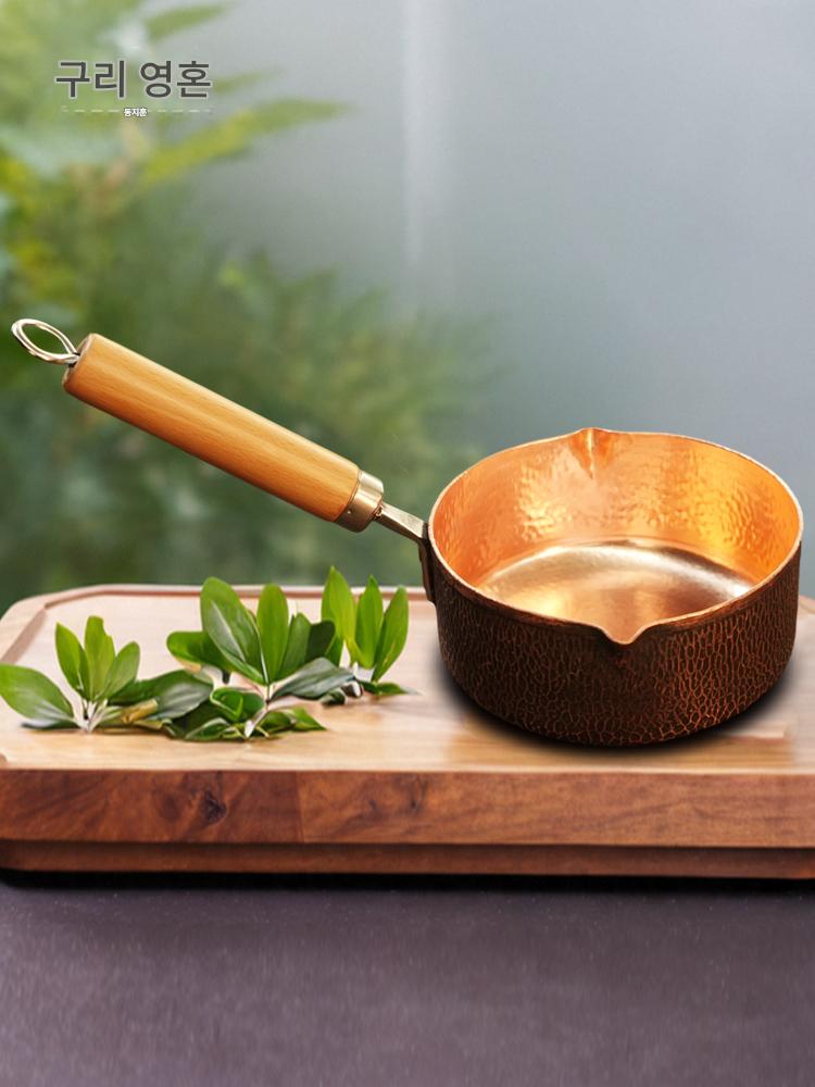 구리 두껍게 만든 작은 구리 냄비 우유 냄비 복고풍 일본식 눈 평평한 냄비 아기 음식 냄비 가정용 인스턴트 국수 냄비 수프 냄비 측면 손잡이