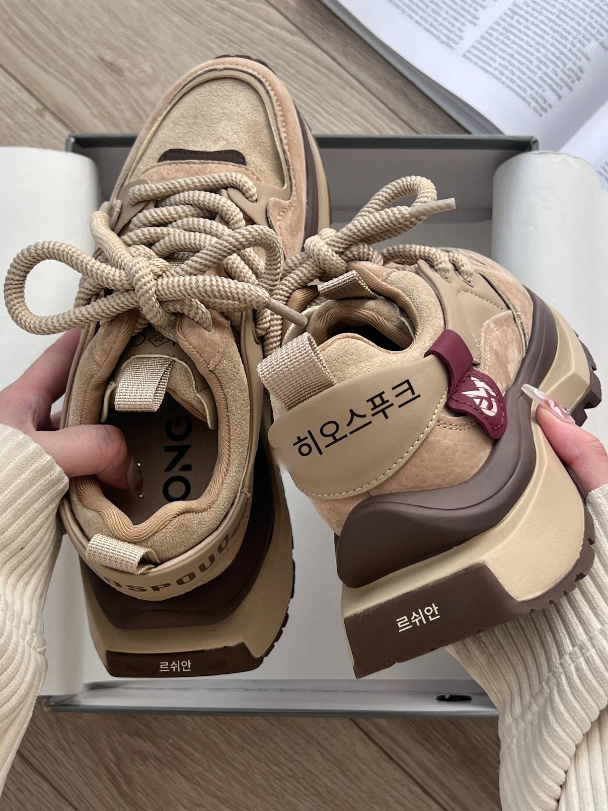 [굽 높이 5cm] 여성용 와플 검프 슈즈 2025년 봄 신스타일 아빠 슈즈 키 증가 두꺼운 바닥 스포츠 캐주얼 슈즈