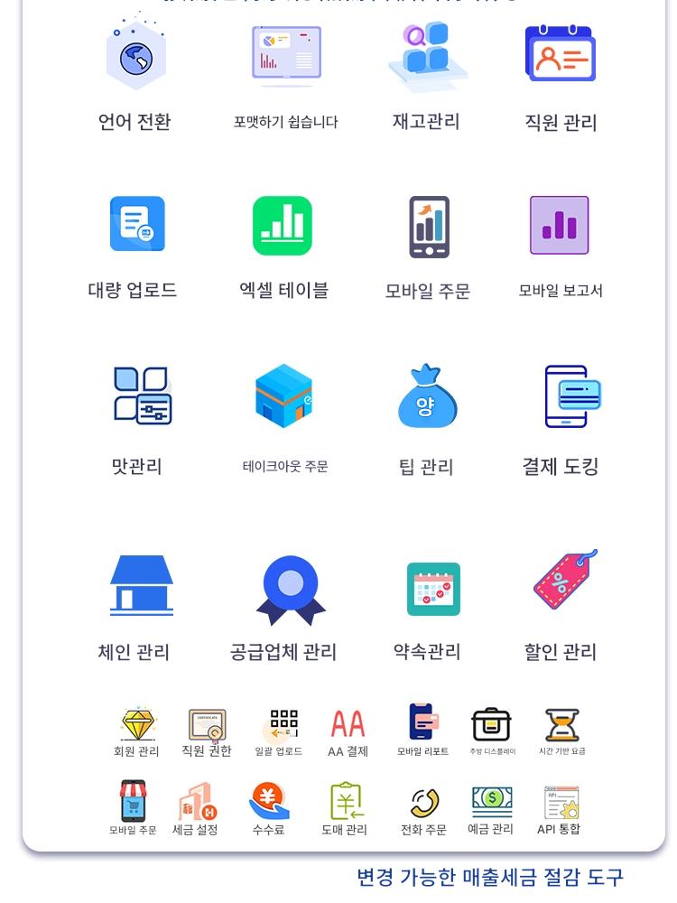 금전등록기 해외 다국어 전통영어 레스토랑 주문기 슈퍼마켓 편의점 밀크티 올인원 시스템