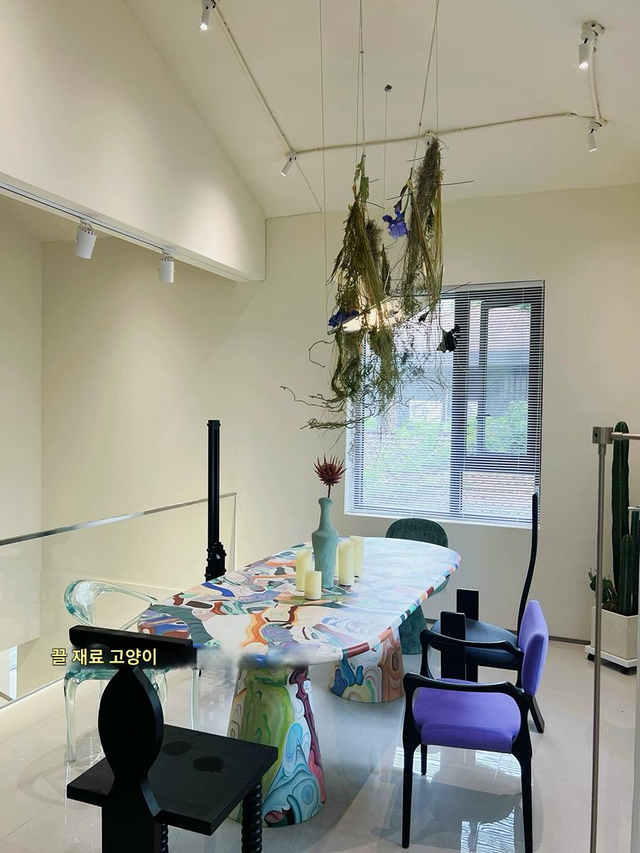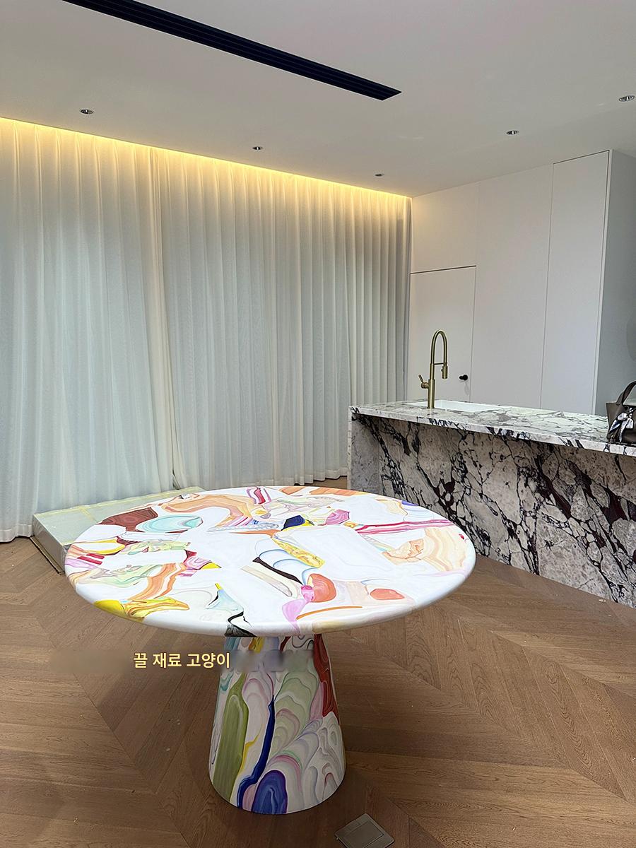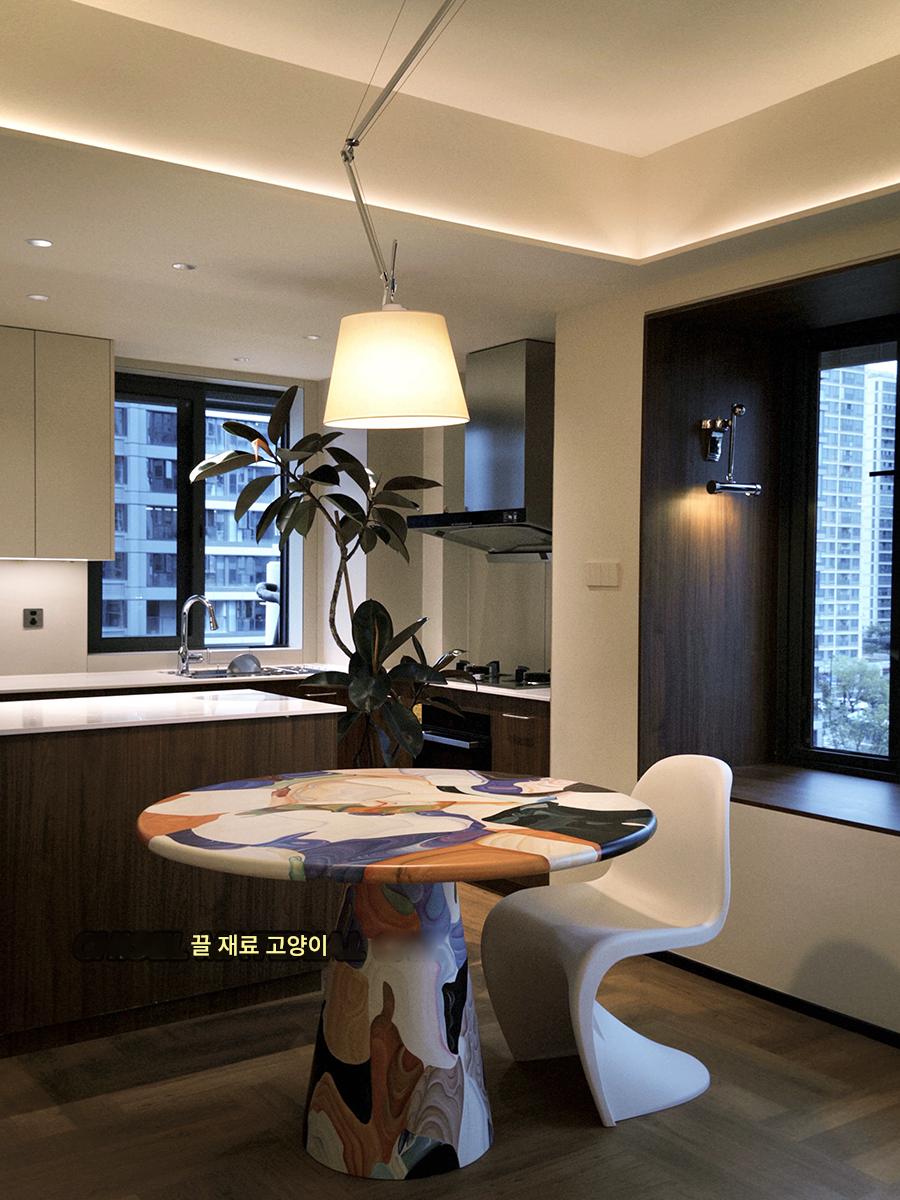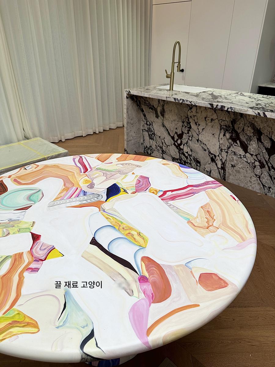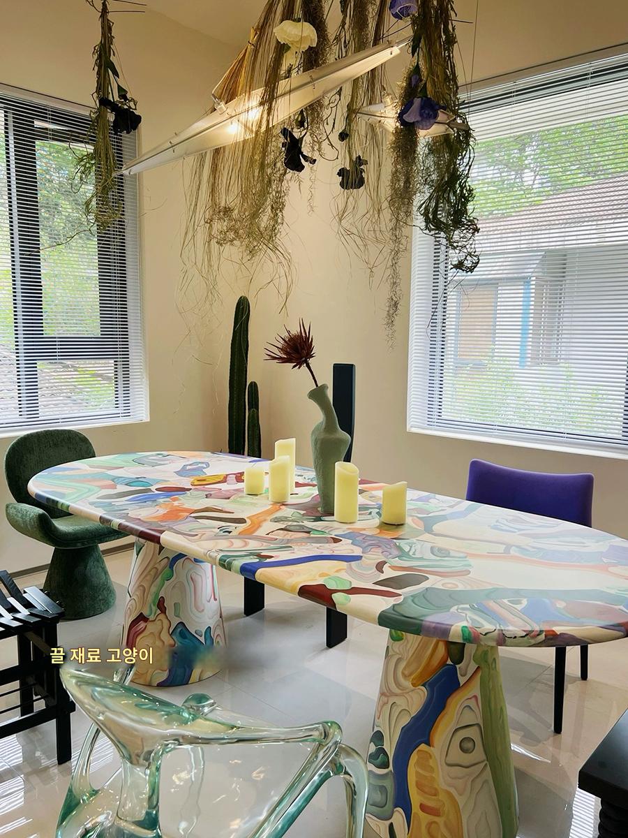 끌로 깎은 고양이 유리섬유 맞춤형 네덜란드 예술가 용광로 유화 페인팅 테이블 창의적 조명 고급 레저 식탁