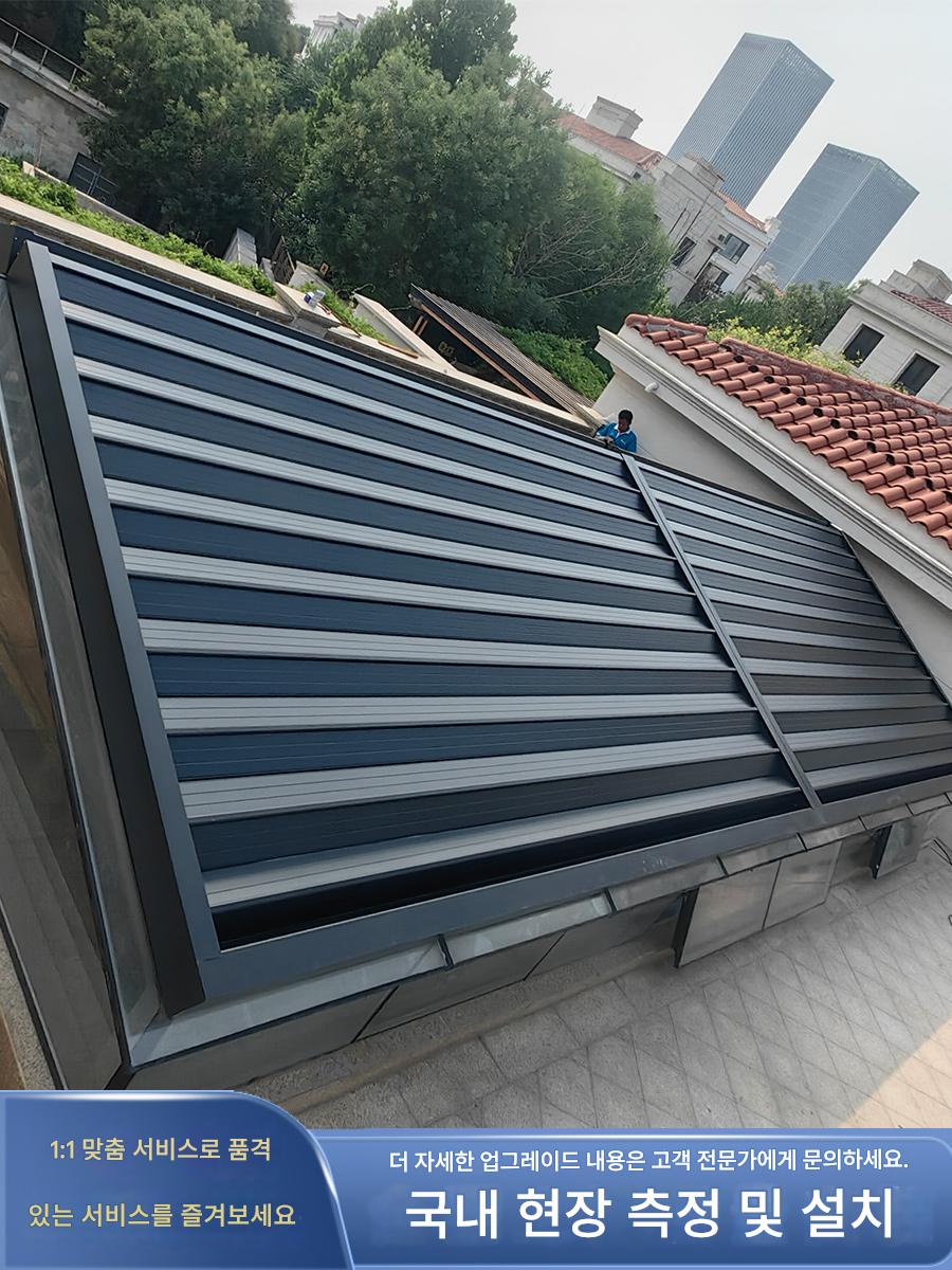 내 썬룸 선쉐이드 커튼 전기 천장 단열재 태양 보호 알루미늄 합금 접이식 롤러 블라인드 빌라 유리 룸 스카이라이트