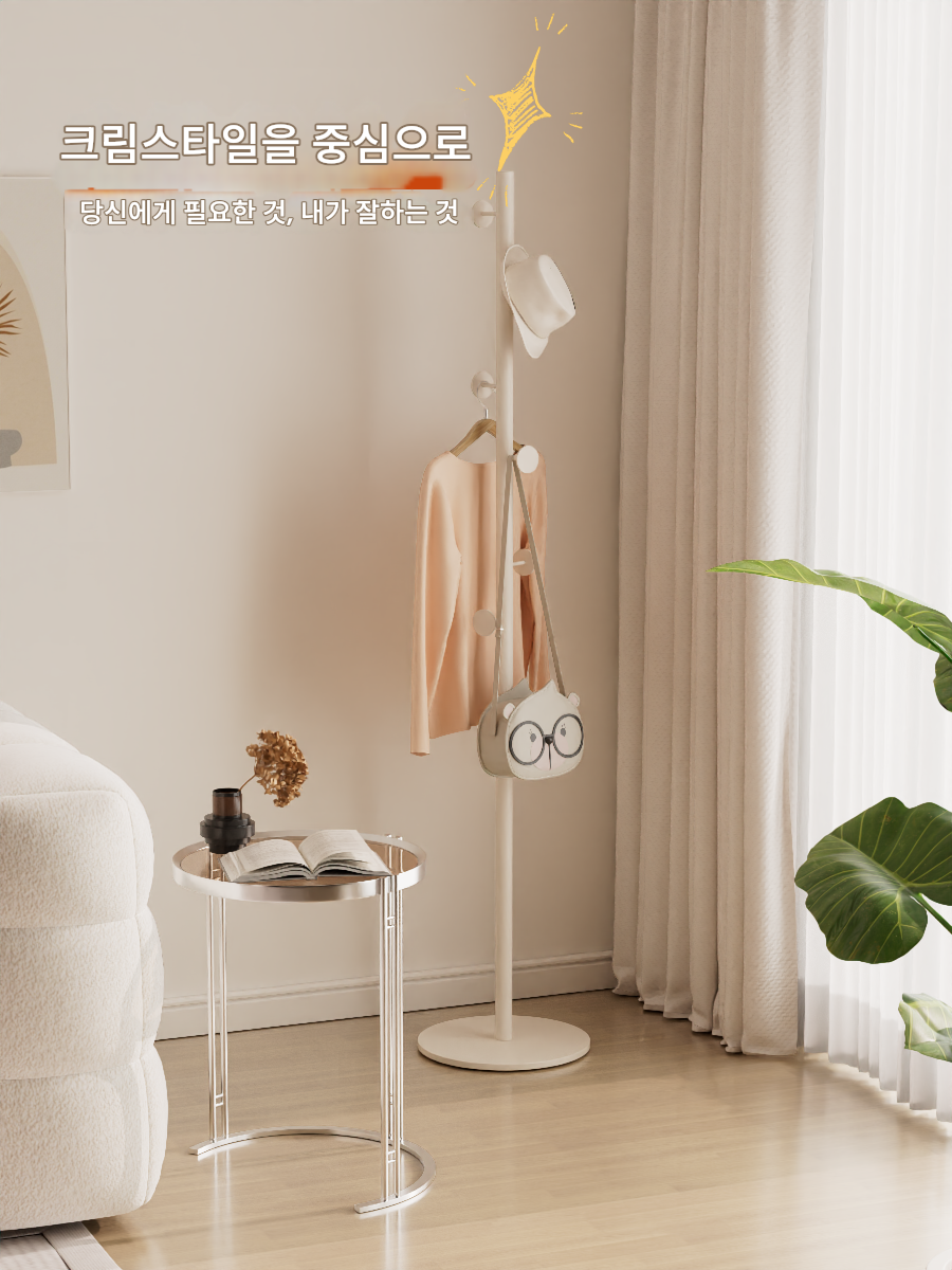 노르딕 심플 플로어 스탠딩 코트 랙 크림 스타일 록 플레이트 옷걸이는 집 현관 코트 랙을 차지하지 않습니다.