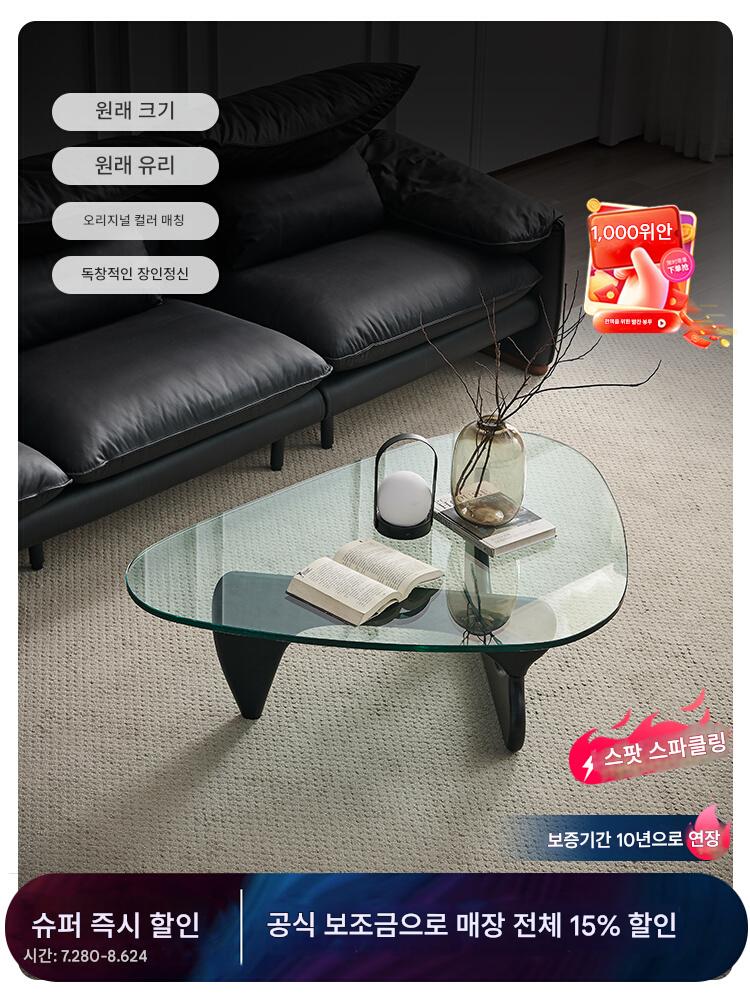 노르딕 이사무 노구치 커피 테이블 노구치 디자이너 크리에이티브 솔리드 우드 특수형 티 테이블 라이트 럭셔리 레트로 유리 티 테이블