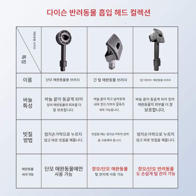 “다이슨 진공 청소기 애완동물 털 흡입 헤드 V6V7V8V10V11V12V15 고양이 및 개 털 브러시 헤드에 적합”의 첫 상품평을 남겨주세요