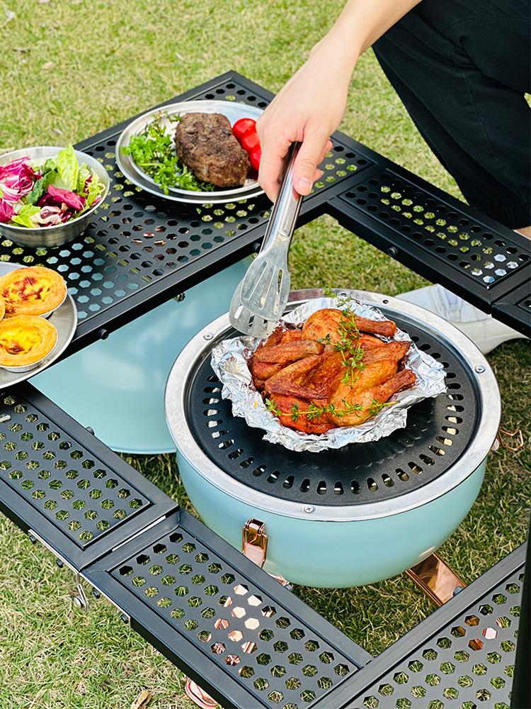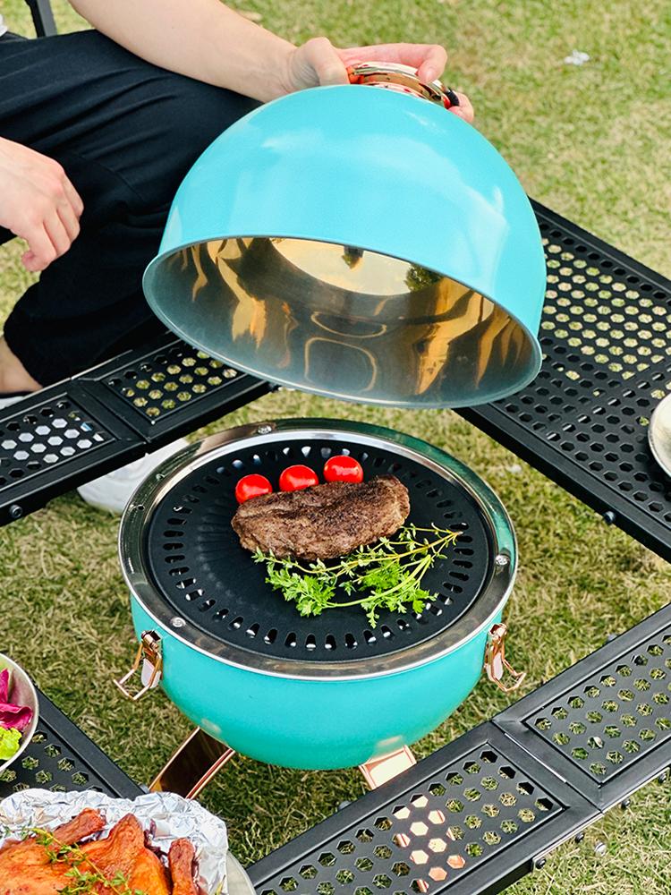 도파민 컬러 커플 가마 다기능 야외 발코니 휴대용 숯불 구이, 스튜, 튀김, 베이킹, 캠핑 및 피크닉
