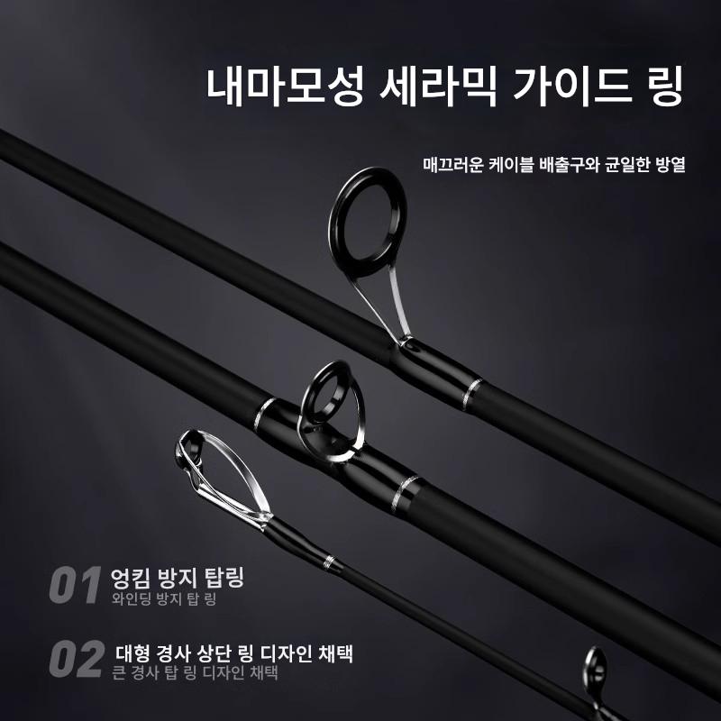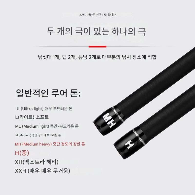 독일산 슈퍼 하드 장거리 더블팁 카본 루어로드 MH+H 하드튜닝 싱글로드 초보자 세트 담수 블랙 콕크로치