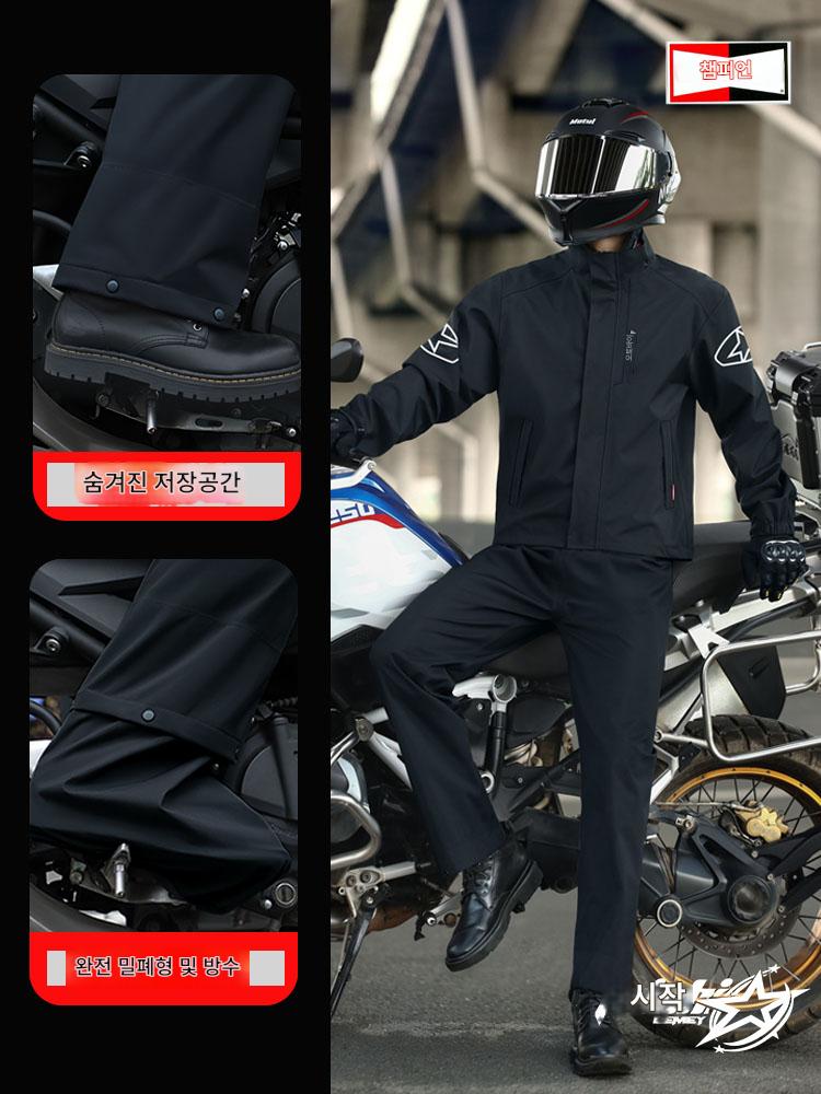 독일제 오토바이 라이딩 레인코트 아우터웨어 롱 전신 방수 스플릿 슈트 배달원용