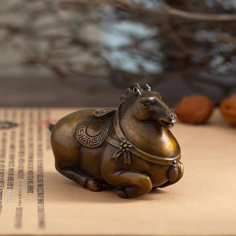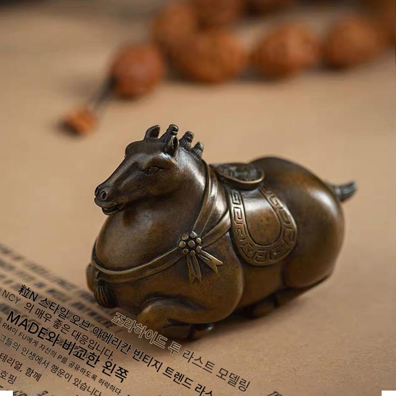 돈을 든 황동 말 손잡이 인형, 조디악 말, 남자 휴대용 손잡이, 가정 장식, 데스크탑 티펫 작은 장식품
