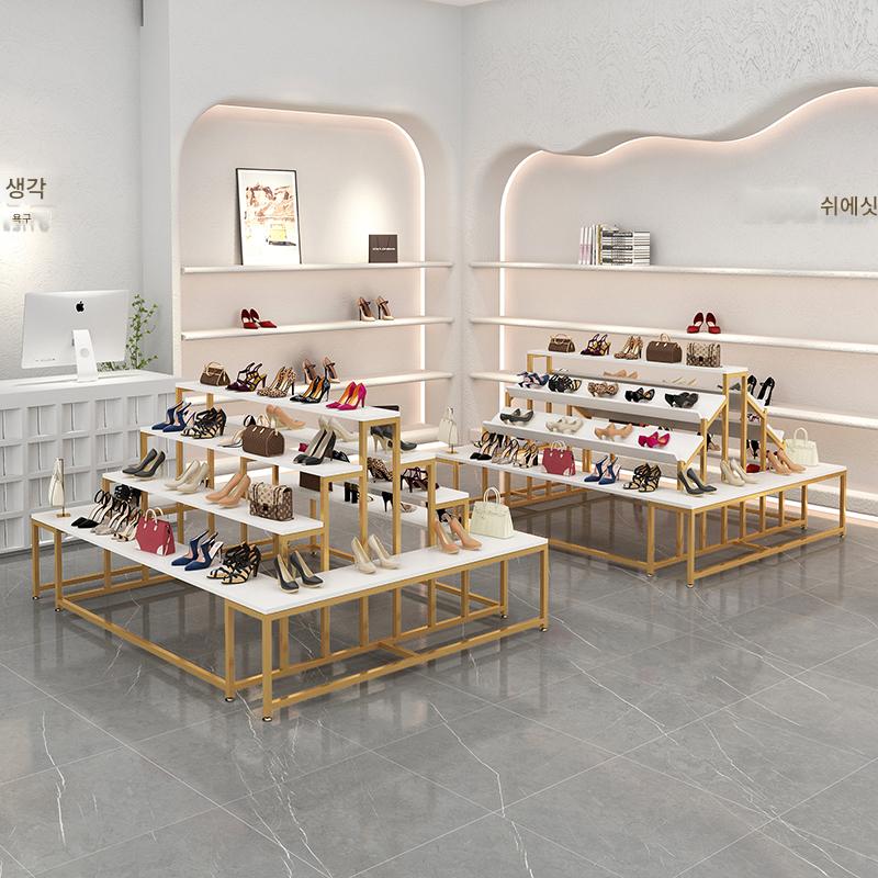 디스플레이 랙 신발장 상업용 다층 가방 디스플레이 랙 쇼핑몰 전시장 사다리꼴 섬 물 테이블 랙 선반