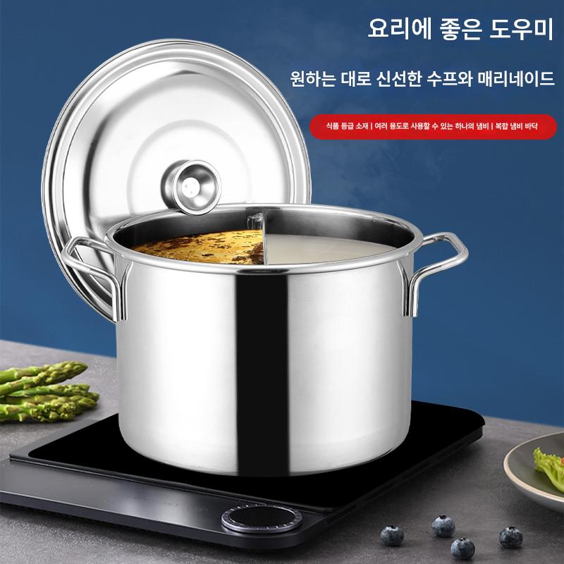 뚜껑이 분리된 두껍고 업그레이드된 스테인리스 스틸 수프통 만다린 오리 냄비 초대형 용량 국수 요리통 소금물통 매운 핫팟 상업용