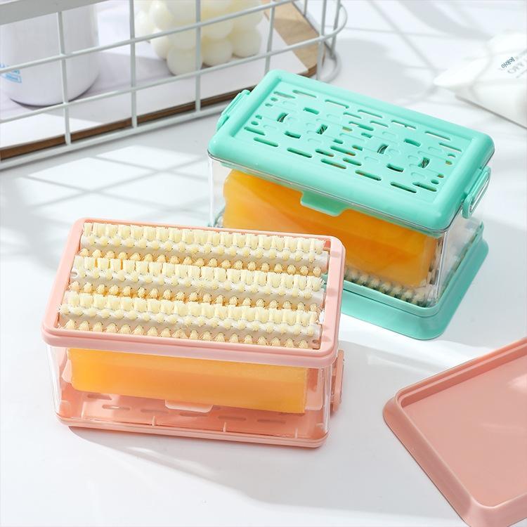 뚜껑이 있는 새로운 가정용 비누 배수구 보관 상자 플라스틱 핸즈프리 세척 다기능 브러시 비누 거품 상자