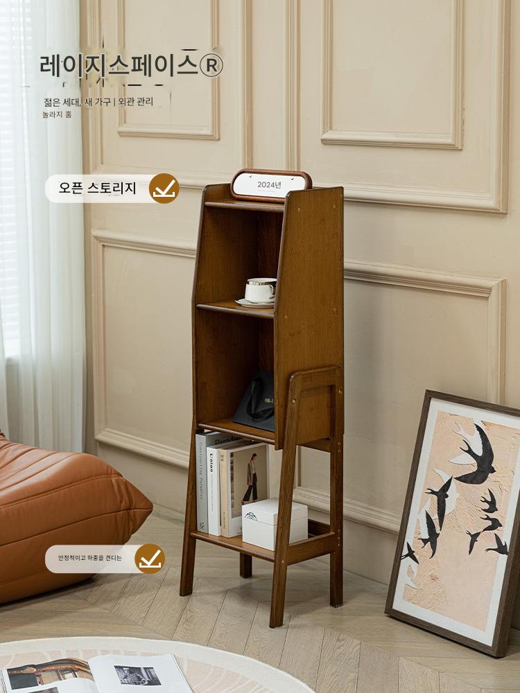 레이지 스페이스 심플 레트로 홈 디스플레이 랙 거실 견고한 나무 수납 사이드 캐비닛 네트 셀러브리티 레스토랑 선반 랙