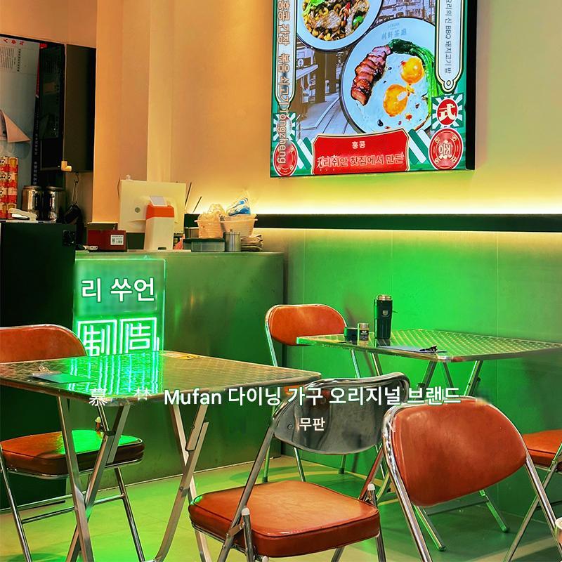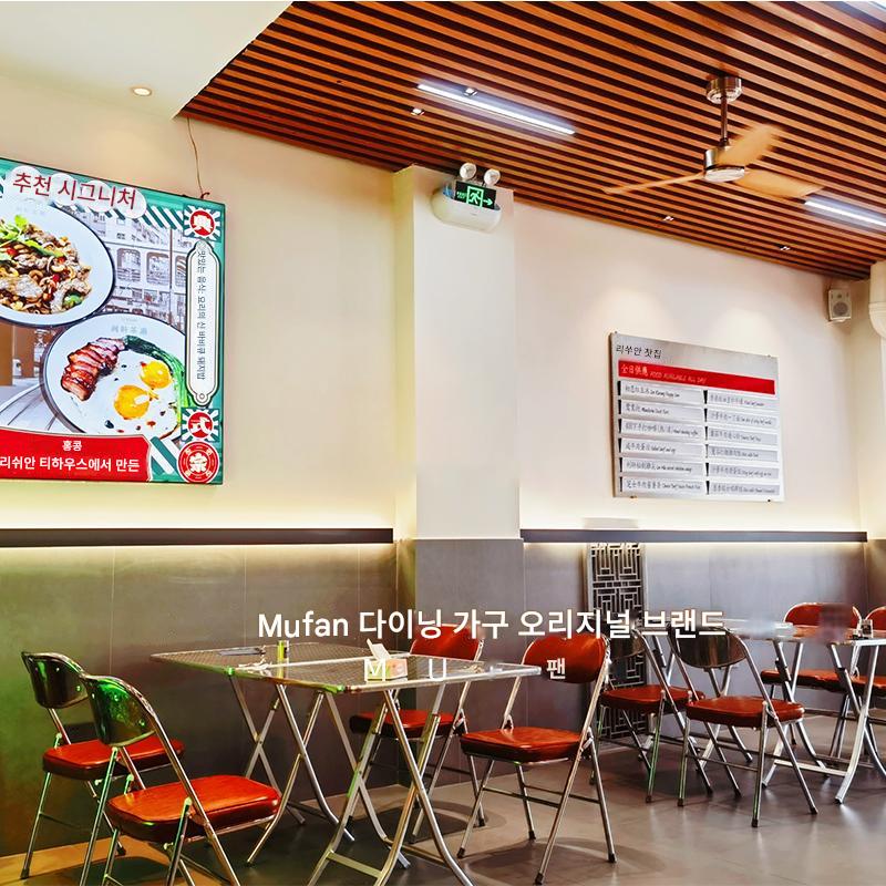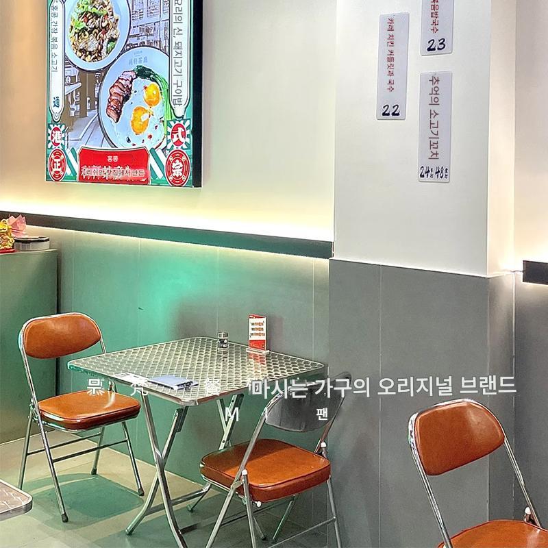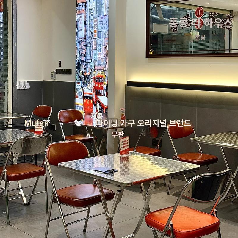 레트로 홍콩 스타일 테이블과 의자 조합 한국식 간식 바베큐 고기 쌀국수 케이터링 티 레스토랑 스테인리스 스틸 접이식 테이블 상업용