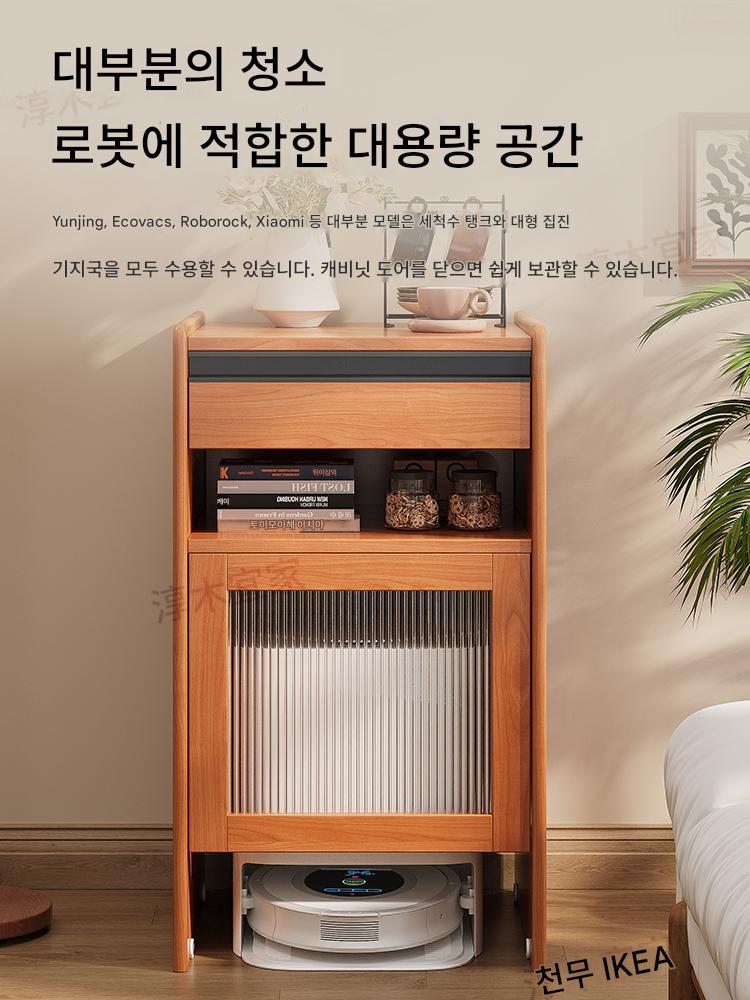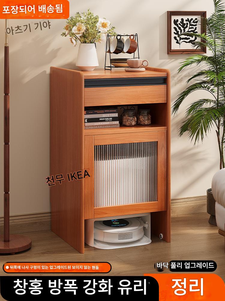 로봇 스위핑 캐비닛 랙 보관 캐비닛 견고한 나무 소파 사이드 캐비닛 이동식 클라우드 고래 돌 견고한 나무 캐비닛
