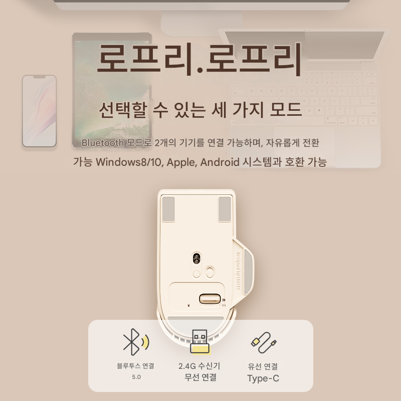 로프리 로프리 샤오차오 3모드 무선 블루투스 마우스 충전 맥 노트북 데스크탑 컴퓨터 태블릿 마우스