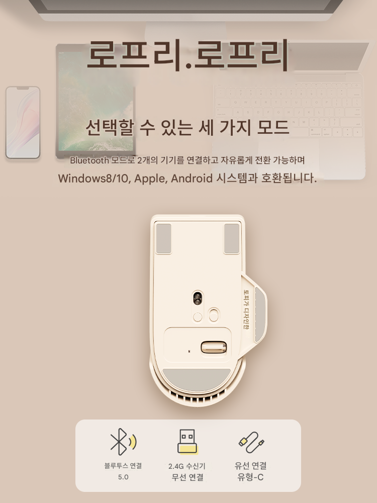 로프리 로프리 소교마우스 무선 3모드 블루투스 충전 귀여운 여자 노트북 아이패드 오피스