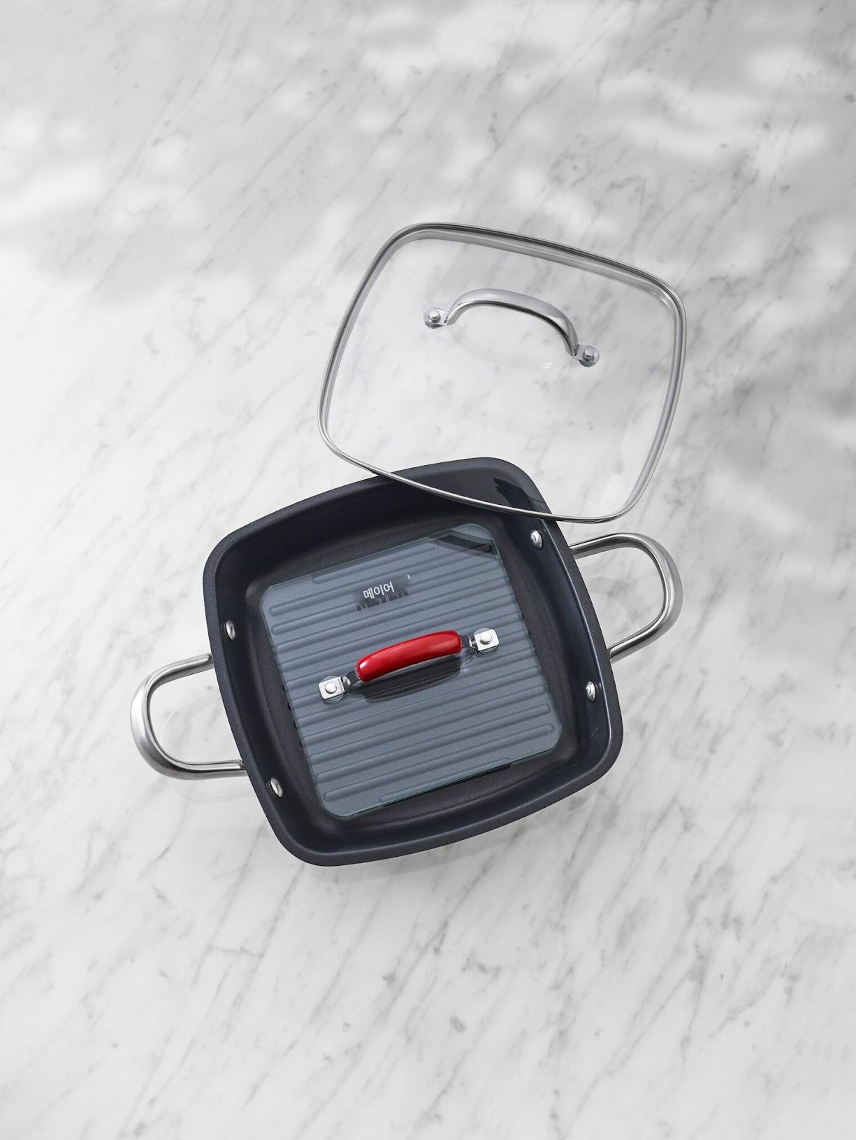 냄비 뚜껑 사각형 압력판 빨간색 손잡이